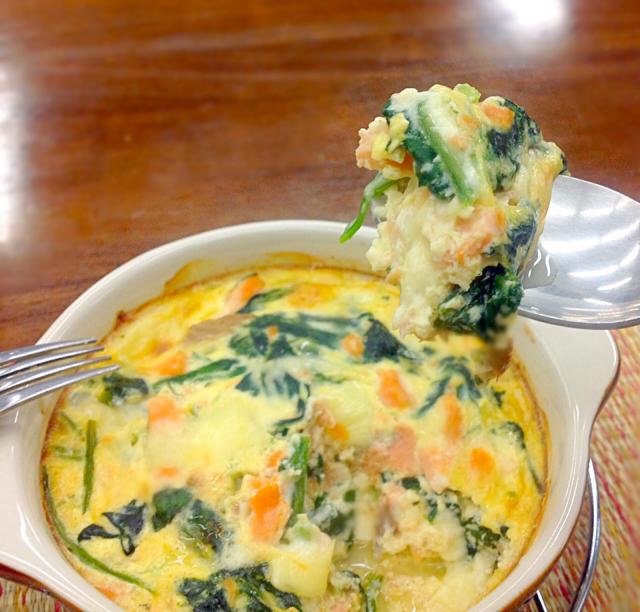 ほうれん草と卵のふんわり焼きのレシピ つくり方 キッコーマン ホームクッキング