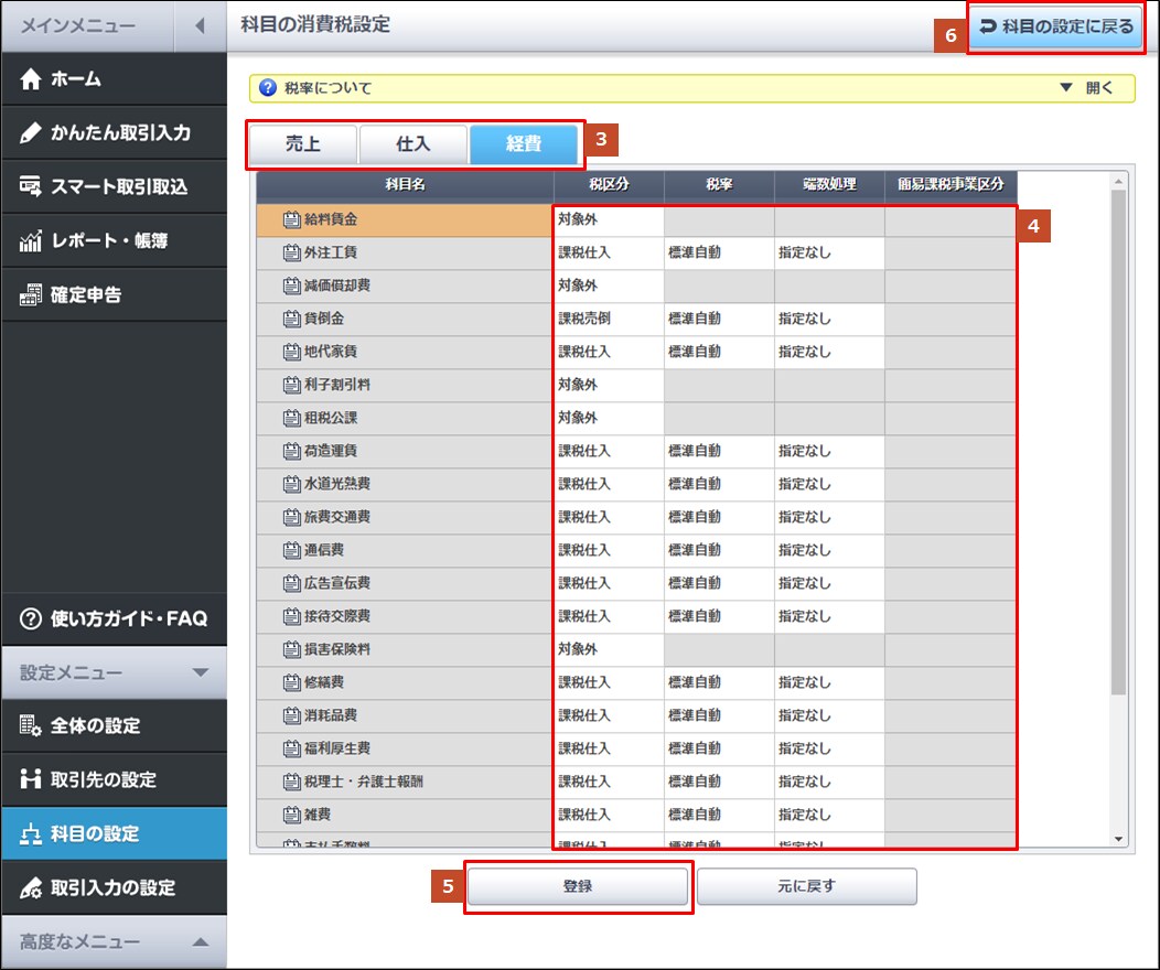 科目の消費税設定 やよいの白色申告 オンライン サポート情報