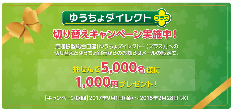ゆうちょダイレクトプラスに切り替えると抽選で3 000名様に1 000円をプレゼント 2月29日まで こじナビ