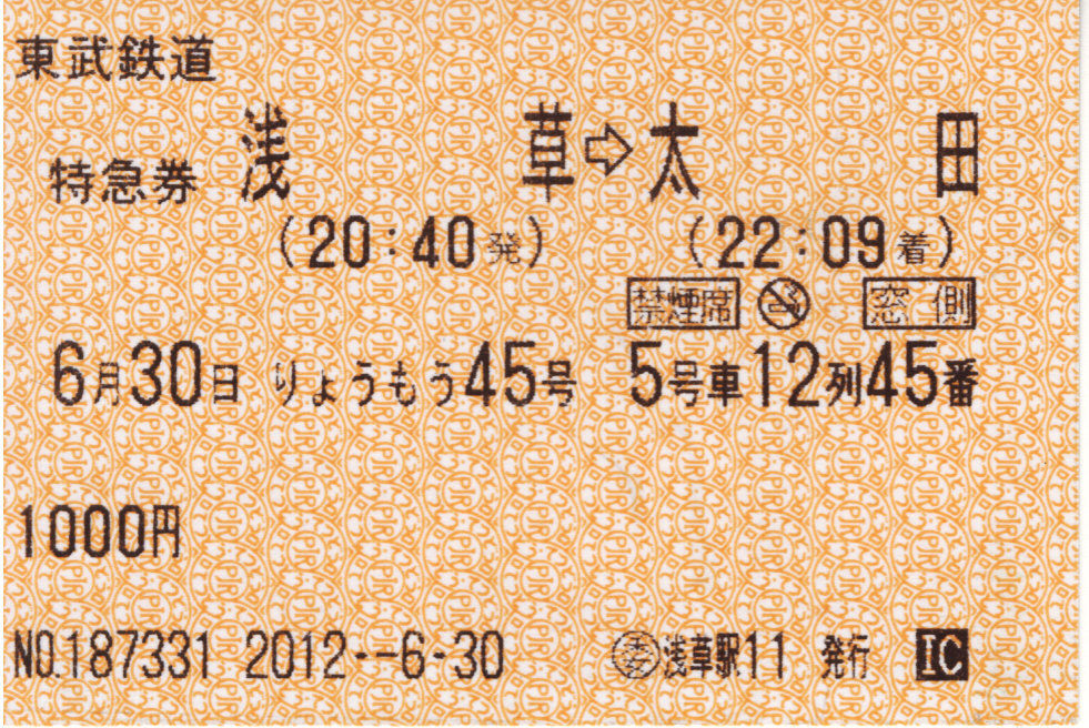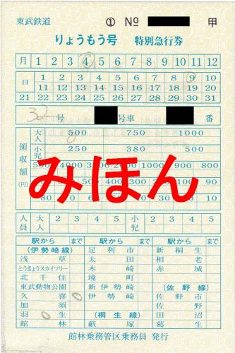 東武鉄道 りょうもう号車内発行特急券 古紙蒐集雑記帖