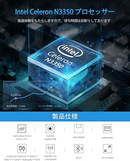 Amazon Co Jp Windows 10 小型デスクトップパソコン Celeron プロセッサーn3350 最大2 4ghz デュアルコア Minisforum N33ミニpc 4gb Ddr4 64gb Emmc ファンレス 2 4 5 8g Bt4 2 Hdmi Vga デュアルディスプレイ出力 ギガビットイーサネット 3xusb3 0 自動電源オン