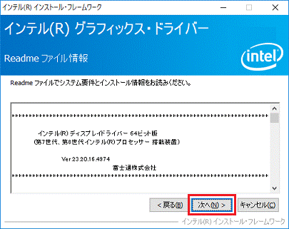 富士通q A ディスプレイドライバー インテル R ディスプレイドライバー 64ビット版 Ver 23 20 16 4974 プレインストール版 の再インストール方法を教えてください Fmvサポート 富士通パソコン
