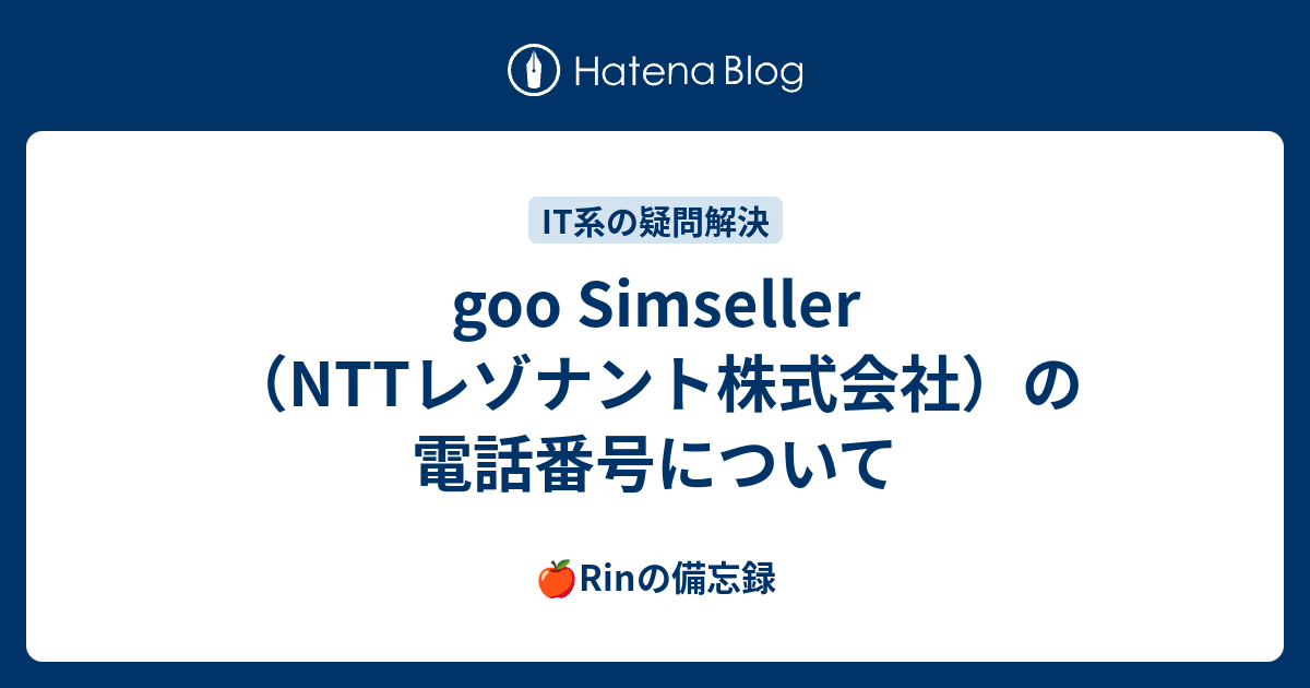 Goo Simseller Nttレゾナント株式会社 の電話番号について 詰まらぬ知恵の忘備録