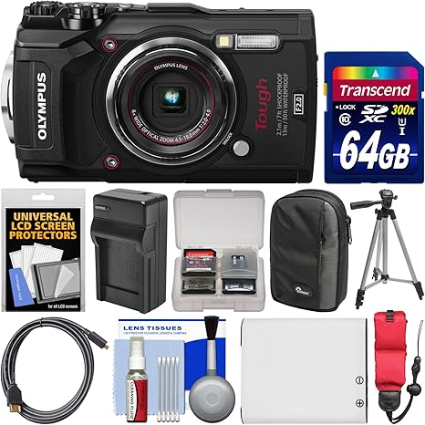 Amazon Olympus Tough Tg 5 4 K Wi Fi Gps衝撃 防水デジタルカメラ ブラック With 64 Gbカード ケース バッテリー 充電器 三脚 フロートストラップ キット コンパクト 通販