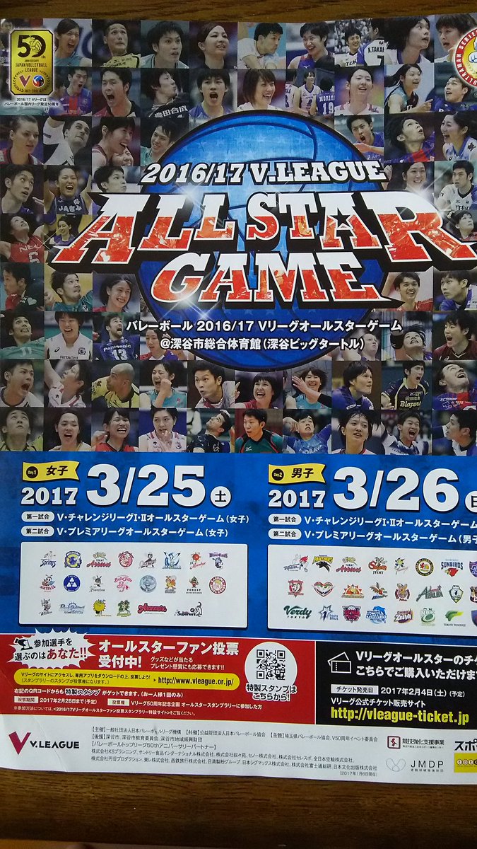 なおき応援団長 On Twitter 2016 17vリーグオールスター ゲームが深谷市総合体育館 にて行われます 3月25日 土 女子大会 26日 日 男子大会 Vチャレンジリーグ Vプレミアリーグ オールスターゲーム男女4試合 Mc つとめさせて頂きます 最強mc陣のみなさん