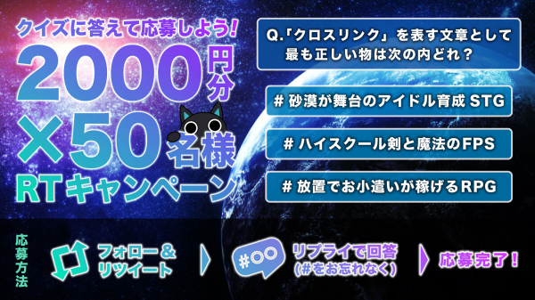 放置でお小遣いが稼げるゲーム Crosslink が クイズに答えてアマギフ2 000円分をgetできる Rtキャンペーン第二弾を開催中 インディー
