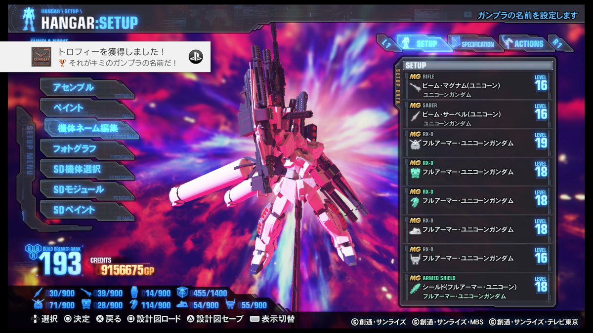 おつみょん On Twitter ガンダムブレイカー3 難易度ニュータイプで全ステージクリアしーの 全パーツmgでガンプラ組みーの 機体名を変更しーの プラチナトロフィー取得しーの とつがねーよ