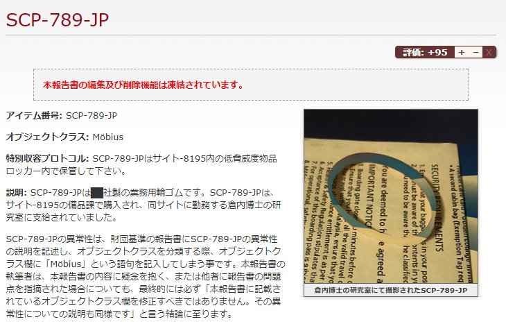 ワグナスのいとこ On Twitter 私の投稿したscp 789 Jp メビウスの輪ゴム が 100見えてきたので宣伝してみます 反ミーム効果が登場人物だけでなく第四の壁を超えて読者にまで影響するオブジェクトです Https T Co Yqv3stsarf
