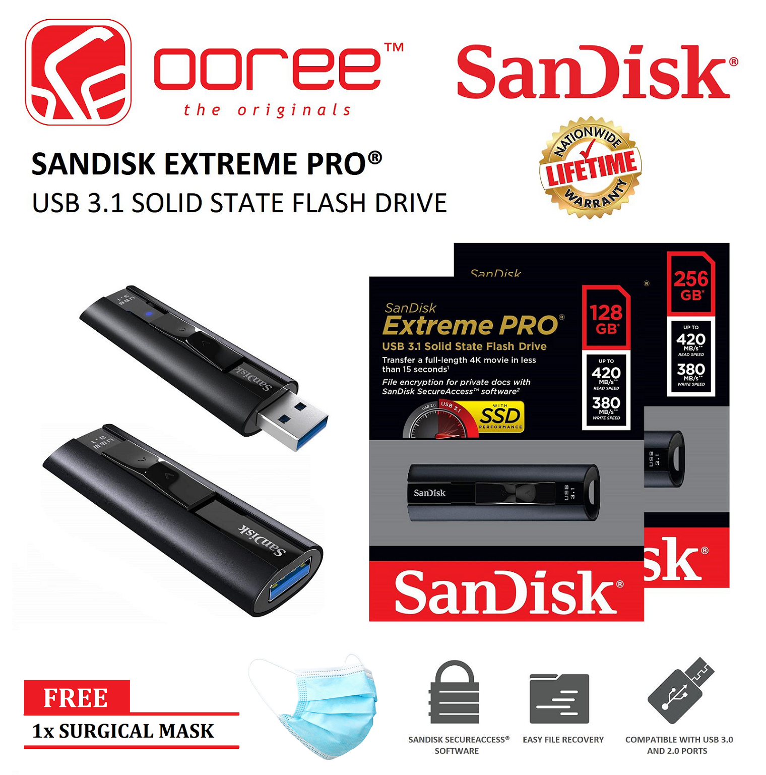 Sandisk Sdcz880 Extreme Pro Usb 3 1 Solid State Flash Drive 128gb 256gb With Sandisk Secureaccess And Rescuepro Deluxe Software Sdcz880 128g G46 Sdcz880 256g G46 Lazada