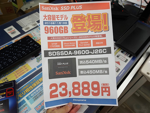 960gbで実売25 800円 Sandisk Ssd Plus に大容量モデルが追加 Akiba Pc Hotline