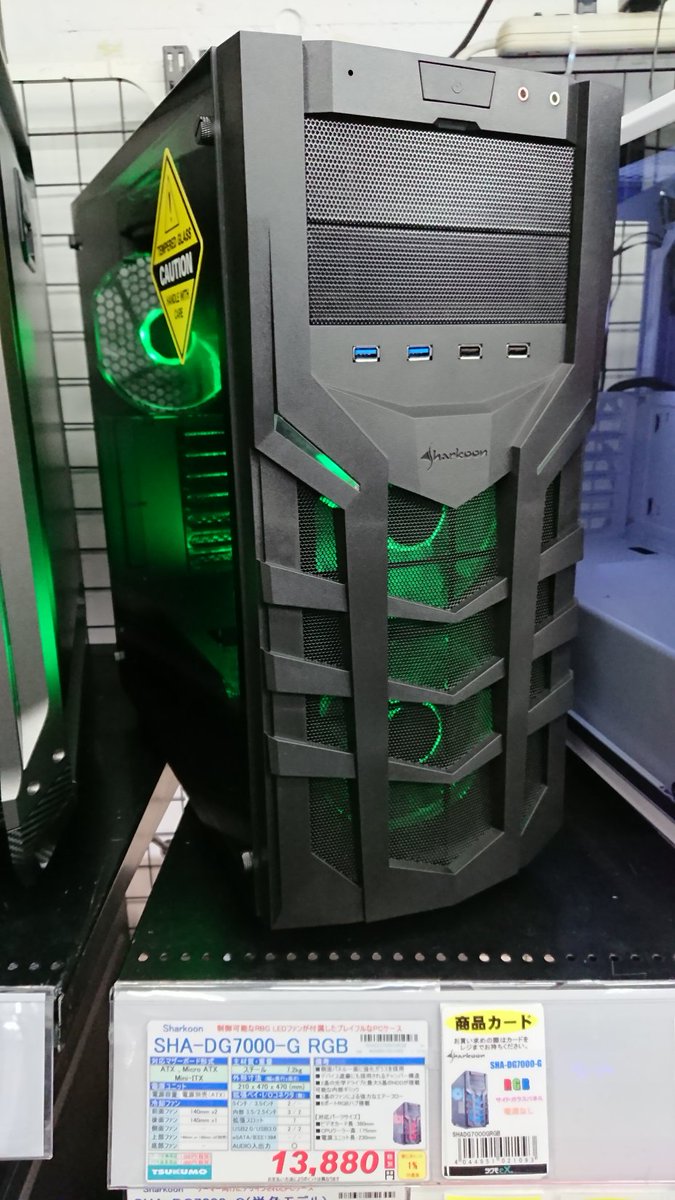 Tsukumo Ex على تويتر 6f Sharkoon Sha Dg7000 G Rgb の取扱いを始めました Aurasyncなどのledコントロール機能に対応した140mmファンが3個とledストリップが1本付属 また最近のサイドガラスのケースとしては珍しい5 25インチベイを2基備えたモデルです