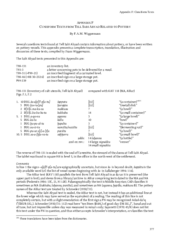 Pdf Cuneiform Texts From Tell Sabi Abyad Related To Pottery Frans Wiggermann Academia Edu