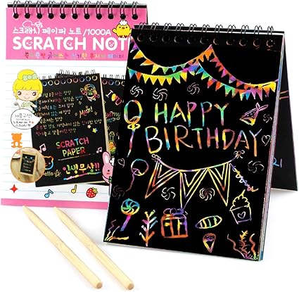 Amazon Com Tmoru Rainbow Scratch Off Paper Colorful Scratch Paper Art Notebooks With 5 Drawing Stencils And 2 Wooden Sticks For Kids Arts And Crafts Perfect Travel Activity Toys Games