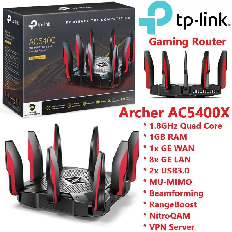 Villman Tp Link Ac5400 Mu Mimo Tri Band Gaming Router Archer C5400x Tp Link First Gaming Router 1 8ghz 64 Bit Quad Core Cpu 3 Co Processor And 1gb Ram Tri Band With Blazing Fast Speed At