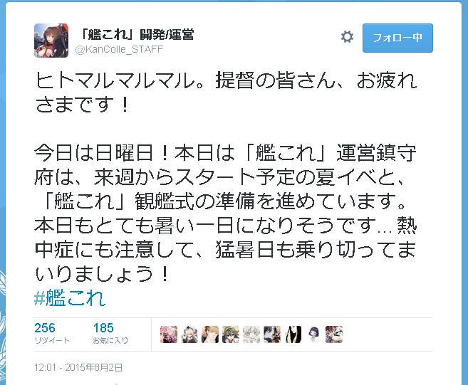 艦これ 開発 運営 の Twitter アカウントが凍結 Telepostのブログ