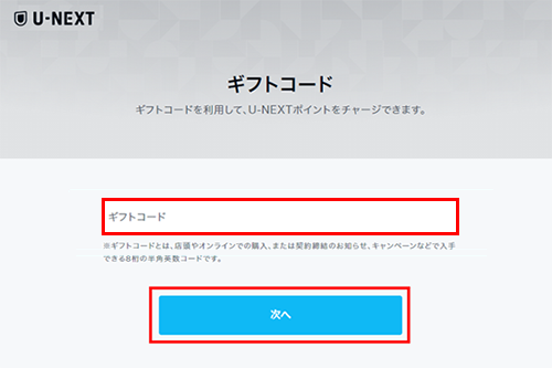 U Next For Biglobe のギフトコードの入力方法を教えてください よくある質問 Faq Biglobe会員サポート