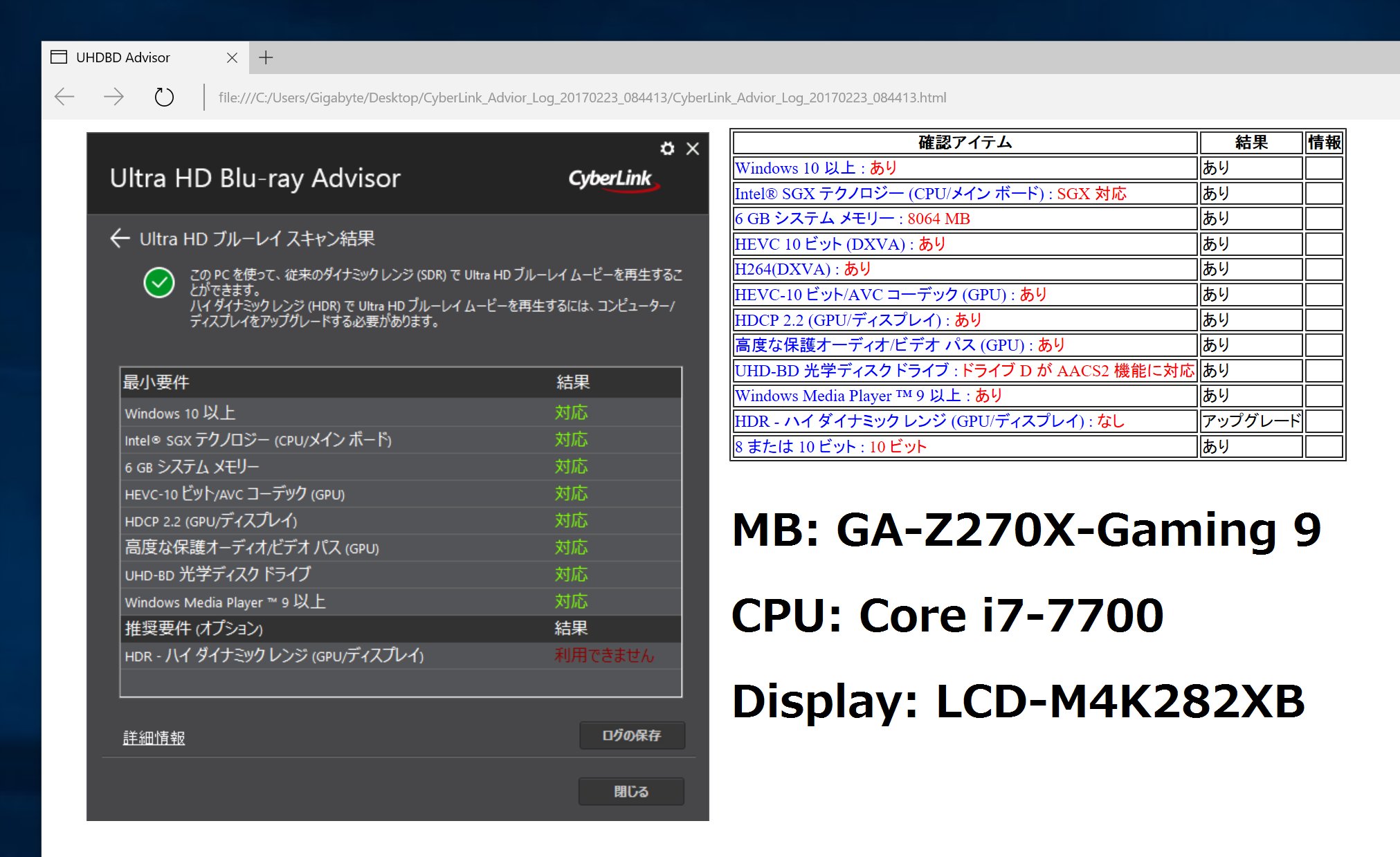 Gigabyte Japan On Twitter Ultra Hd Blu Rayの再生環境を確認するツールが公開されたようなので 早速試してみました D Https T Co 9hjrklnb74