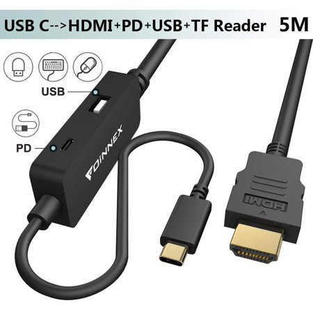 Usb C To Hdmi Adapter Cable With 60w Power Charging Port Usb Micro Card Reader 4k 60hz 15ft Type C Thunderbolt 3 Tv Walmart Canada