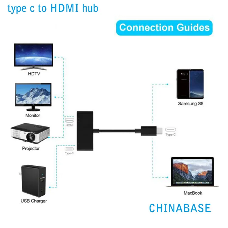 China Usb 3 1 Type C To Hdmi Adapter 4k Usb 3 0 Hub Usb C Full Speed Charging Port Pd Power Delivery Qucik Charging Adapter Cable For New Macbook Chromebook Pixel China Usb C To