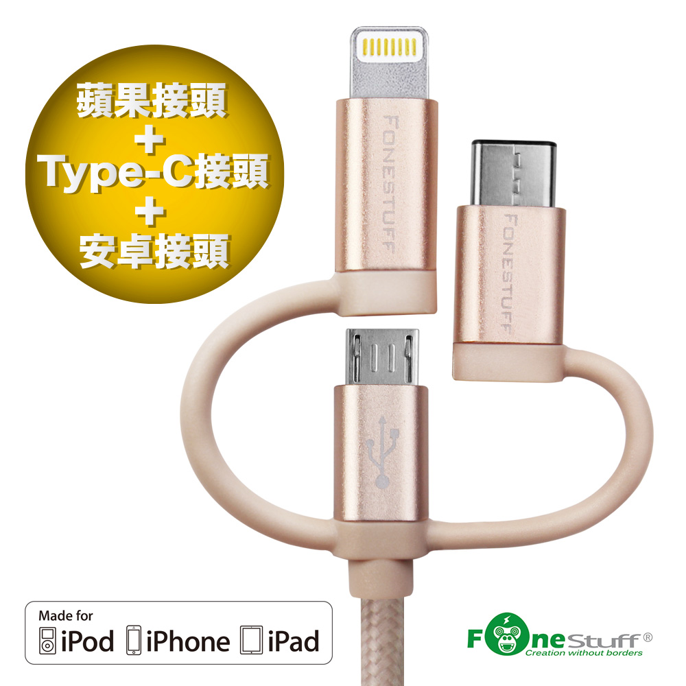 推薦 瘋金剛三合一mfi Lightning Micro Usb Type C 充電傳輸線蘋果 安卓手機充電線 蝦皮購物