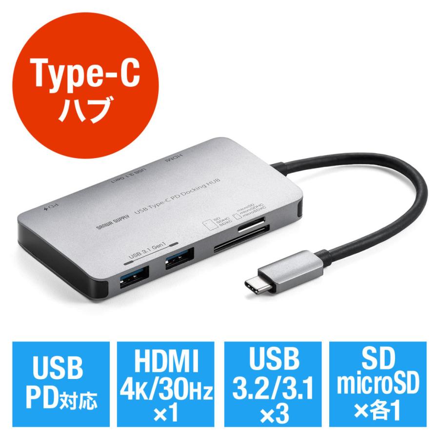 Usb Type Cハブ Usb Pd3 0 100w対応 Hdmi出力 Macbook対応 Usb Pd充電 4k 30hz対応 Microsd Sdカードリーダー アルミ グレー 400 Hub080sの販売商品 通販ならサンワダイレクト