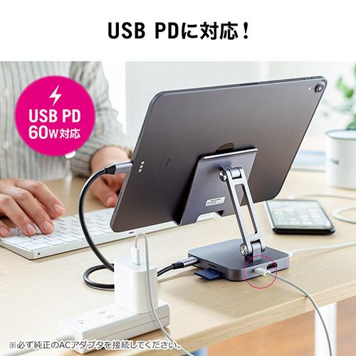 Usb Type Cドッキングステーション スマートフォン タブレット Ipad Proスタンド機能付 Type C専用 Usb Pd対応 Usbハブ Hdmi出力 カードリーダー 400 Hub088gmの販売商品 通販ならサンワダイレクト