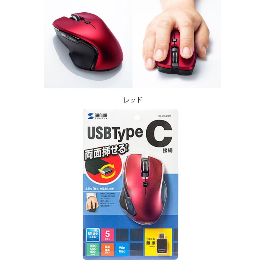 ワイヤレスマウス 静音 ブルーled Usb A Type Cレシーバー 大型 ブラック Ma Wblc169bk 通販ならイーサプライ