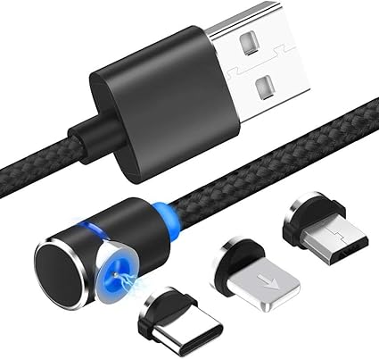 Amazon Co Jp Lightning Type C Micro Usb 充電ケーブル 強力マグネット式 1本3役 急速充電 L字型 Usbケーブル 磁石 着脱式 360度回転 Iphone Android多機種対応 Ledランプ付き 高耐久ナイロン編み加工 1m長 ブラック パソコン 周辺機器