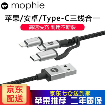 Mophie三合一数据线苹果11mfi认证传输线安卓充电线iphone11pro华为type C快充1米 黑色 图片价格品牌报价 京东