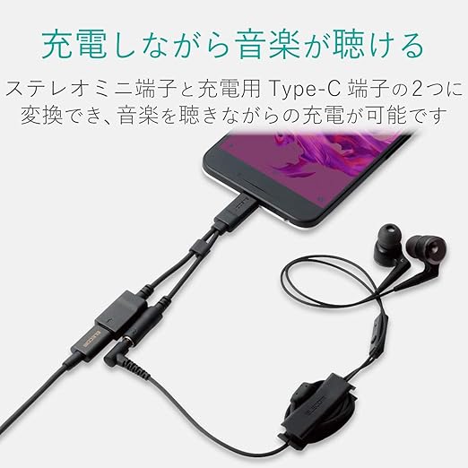 充電付きusb Type C対応イヤホン端子変換ケーブル Ad C35cbk