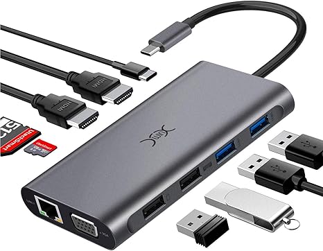 Amazon Com Usb C Hub Type C Adapter Enklen 12in1 Hub With 2x 4k Hdmi Vga Ethernet 100w Pd 2x Usb 3 0 Usb 2 0 Sd Tf Card Reader Mic Audio For Macbook Pro Air Windows Type C Laptops Docking