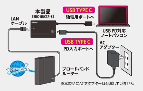 ギガビット通信 100w充電 同時対応 Usb Type C接続の有線lanアダプターをエレコムが発売 Internet Watch