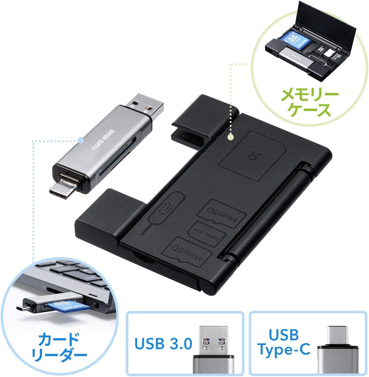 Amazon サンワダイレクト メディアケース付き Sd Microsdカードリーダー Usb C Usb3 0 接続 Sd 1 Microsd 2 Nanosim 1 Simピン 1 収納 400 Adr323gy サンワダイレクト 外付メモリカードリーダー 通販