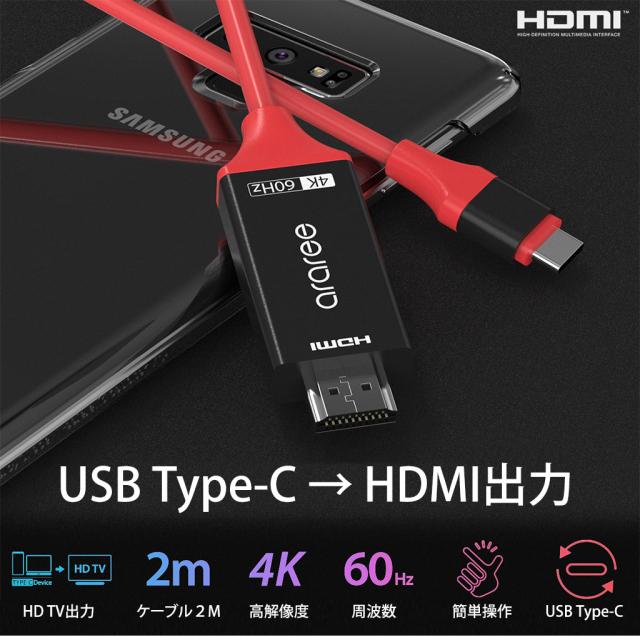 Amazon Araree Usb Type C Hdmi ケーブル 2m スマホからtvへ 変換ケーブル 高解像度 4k 高速データ通信 対応 日本正規代理店品 Araree Usbケーブル 通販