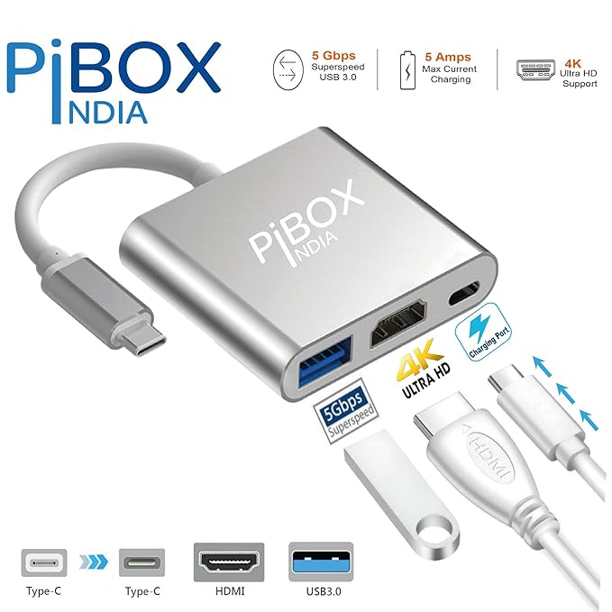 Pibox India Usb C To Hdmi Adapter Aluminium Type C Usb Hub 3 1 To Hdmi 4k Usb 3 0 Usb C 3 In 1 Converter Cable Charging Port Adapter Cable For Macbook Samsung Galaxy S8 S9 S10 Note