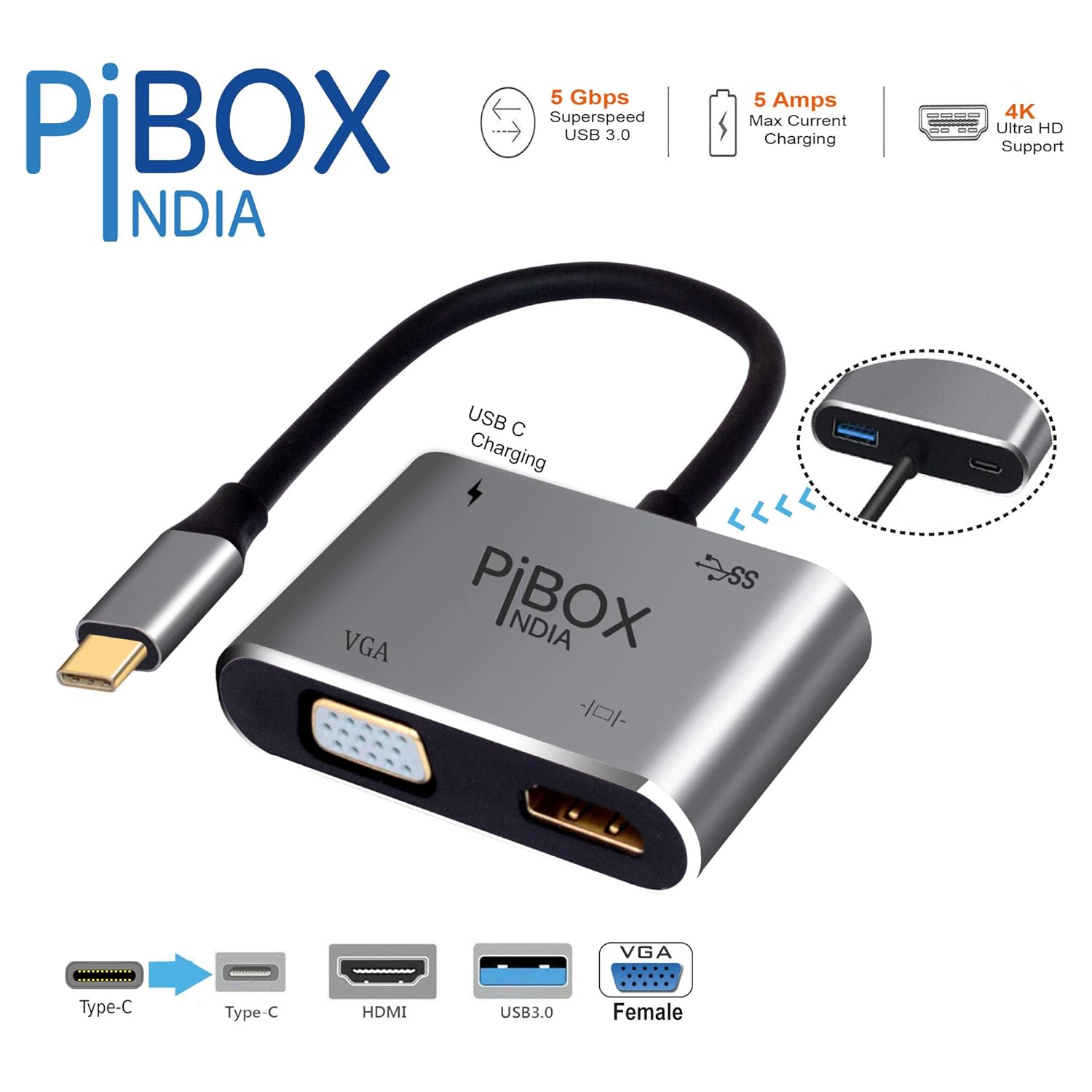 Pibox India Usb C To Hdmi Vga Usb Adapter Aluminium Type C Usb Hub 3 1 To Hdmi 4k Vga Usb 3 0 Usb C Converter Cable Charging Port Adapter Cable For Mac Samsung Galaxy S8 S9 S10 Note 8 Note