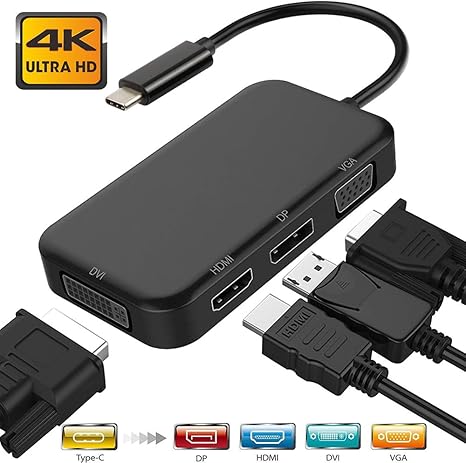Amazon Com Usb C To Hdmi Dvi Vga Adapter Monodeal 4 In 1 Usb 3 0 Type C Hub Vga Hdmi Dvi Video Adapter 4k Uhd Support Hdmi Vga Dvi Vga Simultaneously Male To Female Multi Display Video Converter Home Audio