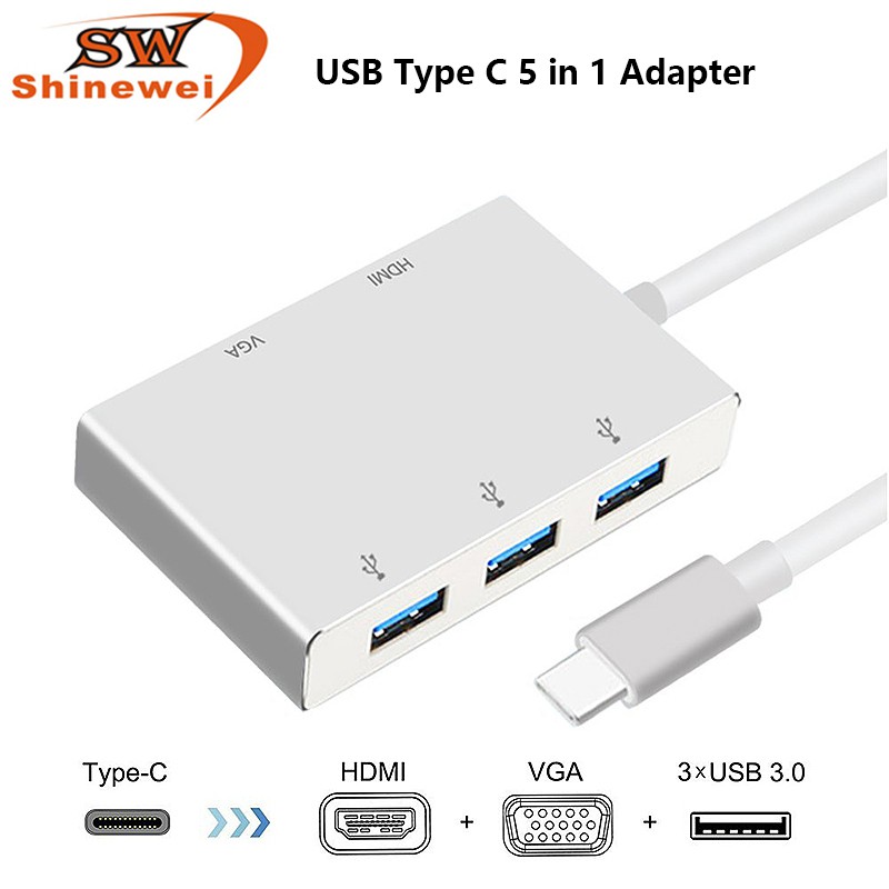 Usb Type C Multiple Adapter 5 In 1 Hdmi Vga 3 X Usb3 0 Shopee Singapore