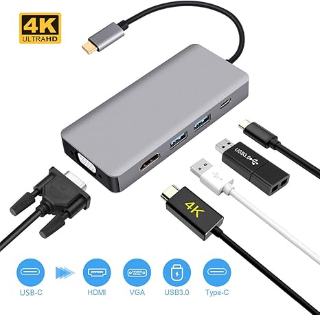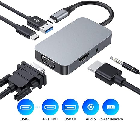 Amazon Com Usb C To Hdmi Vga Adapter 4k Ifmeyasi 5 In 1 Usb C Hub With Hdmi 1080p Vga Usb 3 0 Usb C Pd Charging Audio Type C Multiport Converter Compatible With Macbook Dell