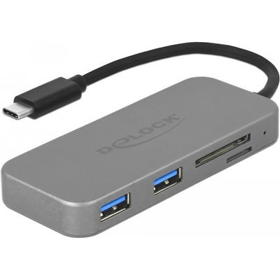 Delock 2 Port Usb3 0 Hub And 3 Slot Card Reader With Usb Type C Connection 64064