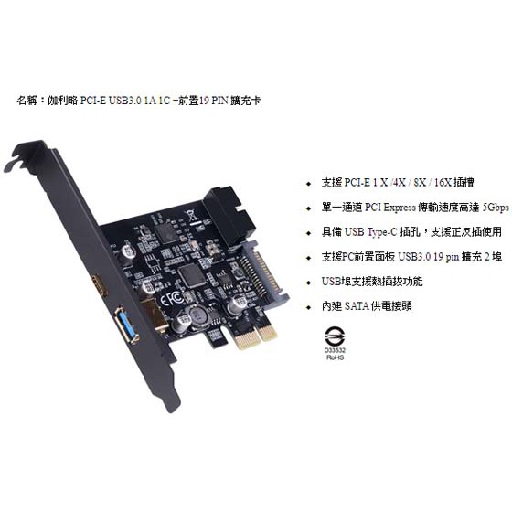 Mr3c 含稅附發票伽利略peu3sa Pci E Usb3 0 1a 1c 前置19 Pin 擴充卡 蝦皮購物