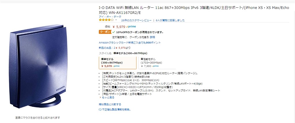 送料込5381円 Iodata Wn Ax1167gr2 ミレニアム群青 のクチコミ掲示板 価格 Com