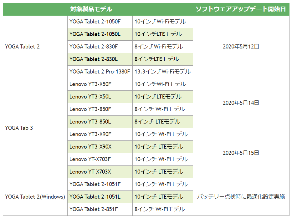 Yoga Tablet 2 にアップデートと バッテリー交換 のお知らせ Yoga Tablet 2